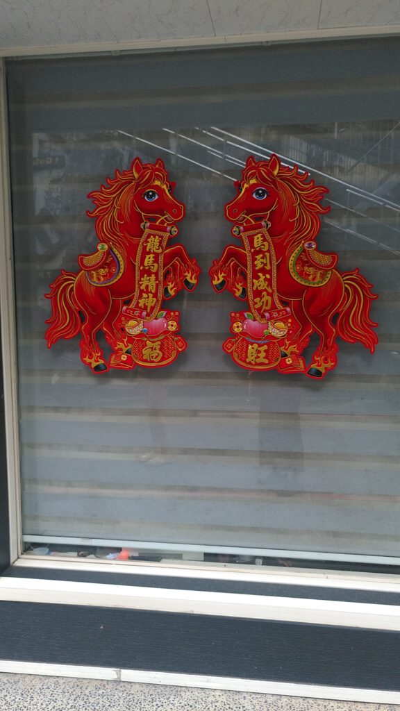 Und in den Straßen waren schon sehr deutlich die Vorbereitungen auf das chinesische Neujahr zu sehen: viele Laternen und ganz ganz viel Pferde-Deko, da 2026 das Jahr des Pferdes ist.